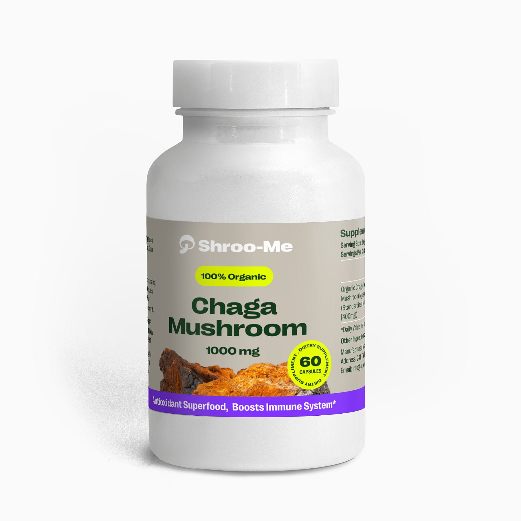 Chaga Mushroom Capsules are a powerful source of natural phytochemicals, extracted from Chaga mushrooms grown on Birch trees in cold climates. The supplement acts as a daily energizer to help keep you alert and productive.